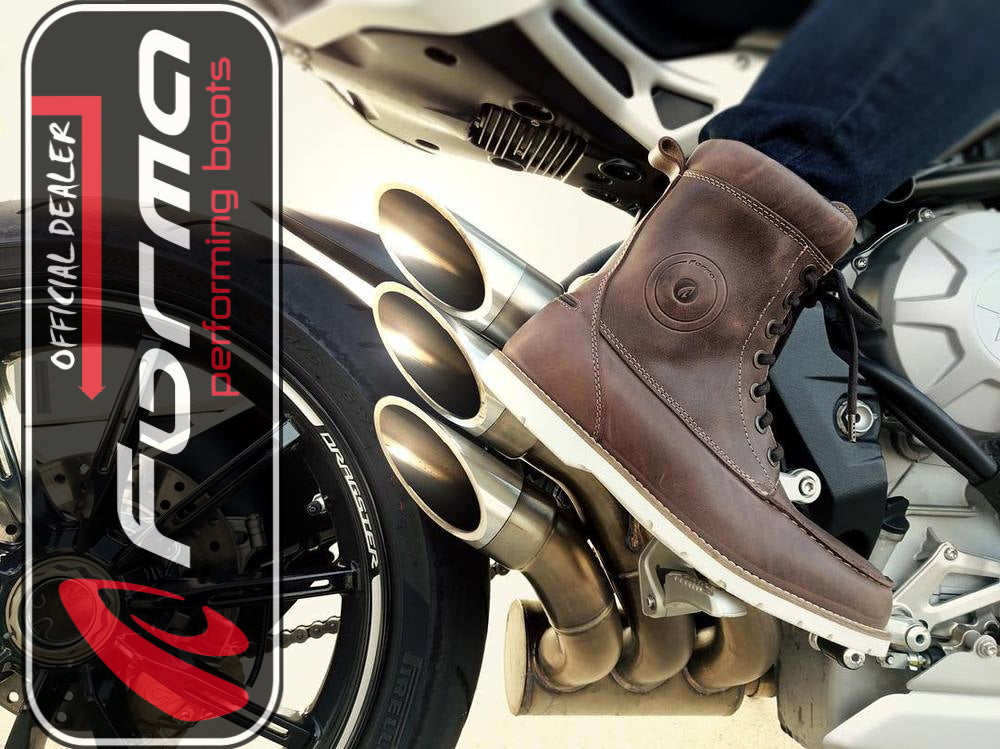 Boots that cover your ankle as a minimum is a must! Be mindful that you need to change gear and brake with your feet, so huge boots will hinder that.